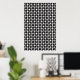 Ein geschmackvolles Retro-geometrisches Blatt/Blume-Muster in Schwarz auf weißem Hintergrund.
