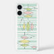 Ein Handy im modernen Stil aus der Mitte des Jahrhunderts mit geometrischen Rautenformen, die auf einem aquamarinen Streifen-Hintergrund in den beliebten Farben der Atomära angeordnet sind. Entwickelt für iPhones.