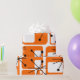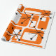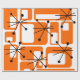 Dieses Retropapier ist mit modernen orangefarbenen Quadraten und schwarzen Sternexplosionen aus der Mitte des Jahrhunderts bedeckt.