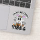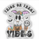 Mit diesem Aufkleber "Trick or Treat Vibes" können Sie Ihrem Hab und Gut etwas süß machen! Mit einem Retro-Geist, der einen mit Süßigkeiten gefüllten Kürbis mit lustigen Bonbonakzenten hält, ist es perfekt für Laptops, Wasserflaschen, Notebooks und Halloween-Kunsthandwerk.