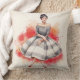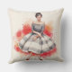 Dekoratives Kissen mit einem hübschen Retromädchen im Sitzen.