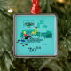 Es sieht so aus, als würde es eine lustige Zeit mit dieser kitschigen Retro Girls’ Night In Christmas Ornament. Das minimalistische Design der 1960er Jahre besticht durch zwei Frauen mit rosa Cocktails in einem modernen, türkisfarbenen und aqua-grünen Wohnzimmer, das sich in der Mitte des Jahrhunderts befindet. Diese Frauen wissen sicherlich, wie man sich entspannt. Das kokette, grüne Kleid mit seiner ravhaarigen Schönheit liegt auf dem Sofa. Ihre blonde Begleiterin sitzt auf einem Zebradruckteppich und trägt ein rotes Oberteil und eine enge, schwarze Hose. Der Vintage Schallplattenspieler und die Lampen aus Papierlattern sorgen für Set. Über dem Sofa hängt ein gerahmter, weltraumhafter Kunstdruck. Personalisieren Sie sich mit dem Jahr.