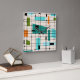 Dieses Retro Gitter und Sternexplosion-Acrylwand-Uhr ist, wo Vintage Art modernen Tag sich trifft. Sie kennzeichnet einen cremefarbenen Hintergrund mit kitschy, weg weg den Konditionsquadraten und von den Rechtecken in aquamarinem, im Türkis, in diesem hellblauen, Orange und Avocadogrün. Die wunderlichen Blöcke der Farbe werden werden gearbeitet in einige der Gitterschnitte bedeckt. Es gibt auch schwarze Rechtecke mit den schwarzen vertikalen und horizontalen Linien, die ein Gitterfeld bilden. Schwarze Sternexplosionentwürfe und -quadrate sporadisch gesetzt während dieser modernen Tapisserie der Mitte des Jahrhunderts der Farbe. Ergreifen Sie Ihr gehen-gehen Stiefel und Glockeunterseiten und genießen diesen Rückschritt zu den sechziger Jahren.