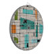 Dieses Retro Gitter-und Sternexplosion-Pfeil-Brett ist, wo Vintage Art modernen Tag sich trifft. Es kennzeichnet einen cremefarbenen Hintergrund mit kitschy, weg weg den Konditionsquadraten und von den Rechtecken in aquamarinem, im Türkis, in diesem hellblauen, Orange und Avocadogrün. Die wunderlichen Blöcke der Farbe werden werden gearbeitet in einige der Gitterschnitte bedeckt. Es gibt auch schwarze Rechtecke mit den schwarzen vertikalen und horizontalen Linien, die ein Gitterfeld bilden. Schwarze Sternexplosionentwürfe und -quadrate sporadisch gesetzt während dieser modernen Tapisserie der Mitte des Jahrhunderts der Farbe. Ergreifen Sie Ihr gehen-gehen Stiefel und Glockeunterseiten und genießen diesen Rückschritt zu den sechziger Jahren.