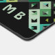Schöne Minze, Meeresfrüchte, olivgrün, aquamarin blau, Elfenbein und schwarz gefärbt Retro abstrakte geometrische Quadrate und Dreiecke Muster Design. Mit der Option, um zu personalisieren oder mit einem Namen Monogramm oder Initial Ihrer Wahl. Verziertes, elegantes, stilvolles und eklektisches Design für die extravagante künstlerische Mode, die künstlerische Modediva, den beliebten angesagten Trendsetter, den Vintagen Retro-Kunststil und den abstrakten geometrischen Motiv-Liebhaber.