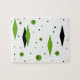 Ce Retro Green Diamonds et Starbursts Puzzle personnalisable est une nouvelle prise sur un style vintage. Il présente des étoiles kitsch, noires sur des pois verts, entourant des formes géométriques, vertes et diamants noirs. Customisez la couleur arrière - plan sur ce produit moderne du milieu du siècle si vous êtes audacieux, ou laissez-le blanc si sobre est plus votre style. Vous êtes sûr de profiter de notre hommage aux années 1950. Achetez ceci aujourd'hui et soyez le chat le plus cool de votre quartier.