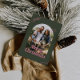 Diese Retro- und Vintage Weihnachten doppelseitig bedruckte Flachkarte bietet eine rosa Typografie mit grünem Hintergrund und einem Rahmen aus Foto. Legen Sie Ihre bevorzugten Fotos ein und passen Sie sie Ihren Wünschen an. Fotos von Prostooleh / Freepik.