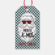 Retro Green and Pink Checkered Santa Claus Christmas Gift Tags.