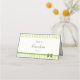 Guide guests to their seats with these retro green stripes place cards, featuring table number and guest name inside, plus meal preference space on front and couple names and wedding date on back. Foldable tent style with a subtle bow. This design coordinates with our program fan, belly band, and invitation suite.
