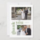 Wir bedanken uns bei Ihnen für die Fotokarte, die einen Retro-Schriftart mit modernem und gepflegtem typografischem Design in einer schlängelgrünen Farbgebung bietet. Diese Karte ist für Sie bereit, um mit Ihren eigenen Fotos und Nachricht, um Ihren Gästen für die Teilnahme an Ihrem Hochzeitstag zu danken. Teil einer ständig wachsenden Kollektion, schauen Sie bitte in der Wedding Dankeschön Card Suite nach verschiedenen Designs.