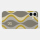 Ein Mod-gemustertes Gerätegehäuse mit einem Platz für ein einfaches Monogramm. Das Taupe-, Grau- und Golddesign weist ein grobkörniges Bio Wellenmuster auf. Ein minimaler Look in dezenten Farben mit einem einfachen Serif-Schriftart für ein Monogramm.