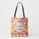 Diese Tasche ist speziell für Brautpartys mit niedlichen Retro-Vintagen Blume-Mustern auf abstrakten Wellen in Rosa, Orange, Gelb und lila. Sie können den Namen und das Datum auf dem Beutel ändern, indem Sie eine personalisierte Vorlage verwenden.