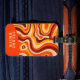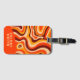 Ein Vintages Retro Psychedelisch farbiges Flüssiggepäck Anhänger. Das handgefertigte, groovierte Muster mit abstrakten, wellenförmigen Formen. In elegantem, orangefarbenem, braunem und beigem Stil. Moderne und dennoch nostalgische 70er Jahre mit Farben und frommen Schriftart. Mit benutzerdefinierbarem Namen