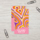 Eine Vintage Retro Psychedelisch farbenfrohe rosa flüssige Visitenkarte. Die abstrakten Formen zeichnen sich durch handgefertigte, groove Muster aus. In elegantem, schicken Orange, Rosa, Beige und lila. Modernes und dennoch nostalgisches Ambiente aus den 70er Jahren, lebhafte warme Farben und zauberhafte Schriftart. Mit individualisierbarem Namen und Beruf und QR-Code.