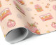Retro Groovy Weihnachtsfeiertage Rollerskates Wrapping Paper Geschenkwrap bietet ein groovantes, lustiges Weihnachtsbild von Friedensschildern, Rollerskates, Schneeflocken, Geschenken, Blume, Schneelöcken, Retro-Musikbänder und Bonbons auf pfirsichfarbenem Hintergrund. Ideal für Weihnachtsgeschenke für Familie und Freunde. Von Evco Holidays entworfen www.zazzle.com/store/evcoholidays