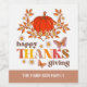 Elegante Retro-Schriftart-Typografie "Happy Thanksgiving", mit niedlichen Blume, Schmetterlingen und einem Kürbis. Der Name kann angepasst werden.
