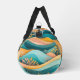 Reisen Sie stilvoll mit dieser zarten Retro-Tasche. Die Tasche zeigt ein fließendes, modernes Design in aquamarin, pfirsich und gelb, die Linien und Kurven bilden eine abstrakte Landschaft. Dieses Duo ist mit dem ersten Mal als stilvolles Monogramm anpassbar und eignet sich perfekt für Wochenenden oder Ausflüge in den Fitnessraum. Diese eindrucksvolle Tasche verbindet ein zauberhaftes Ambiente mit zeitgenössischem Stil und verleiht Ihrem Aussehen eine nostalgische und dennoch moderne Drehung.