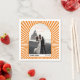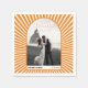 Diese köstliche Dankeschön-Papierserviette ist ideal für Paare, die gewollt haben, ein wenig Vintagen Flair zu ihrem besonderen Tag hinzuzufügen. Die fröhliche orange-weiße Farbpalette mit frischen Sonnenstrahlen wird den Geist der 70er Jahre zum Leben erwecken. Das bogenförmige Design und das Foto sowie der stilvolle Retro-Schriftart schaffen ein einzigartiges und auffälliges Ambiente.