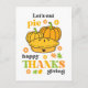 Retro Groovy Stil bunte Grußkarte. Elegante Retro-Schriftart-Typografie "Let's eat pie" und "Happy Thanksgiving", mit Kürbiskuchen und Kürbissen.