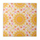 Diese lebendige Keramik-Kachel zeichnet sich durch eine fröhliche Sonne und ein ruhiges Ambiente aus, die in inspirierten Gelb-, Orange- und Rosatönen gehalten sind. Fügen Sie Ihrem Raum einen Pop Farbe und eine Touch Nostalgie mit dieser stilvollen Kachel hinzu. Ideal, um Ihrem Küchenbacksplash, Badewannenwänden oder einer anderen Fliesenfläche in Ihrem Zuhause eine kräftige Retrovibe hinzuzufügen.