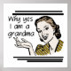 Retro Großmutter-T-Shirts, Kapuzenpullis, Großmutterknöpfe, Verzierungen, Andenken, Magneten, Karten und anderer Gang für Großmutter mit einer Retro Artdame mit Text, der liest, warum ja ich eine Großmutter bin!