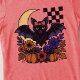 Dieses #halloweenbat Design verbindet gotischen Charme mit Herbstschönheit, mit einer buschigen Fledermaus, die vor einem glühenden Halbmond hoch oben steht. Umgeben von Kürbissen #fallflorals und üppigem Blattwerk, balanciert das Kunstwerk ein wahnhaftes Mysterium mit #vintagehalloween warm. Die fette, schwarze, lila, warme Orange und goldene Creme schaffen einen #retrohalloween-Charakter, der sich durch eine farbenfrohe Farbpalette auszeichnet. Beklemmende Texturen und Akzente im Schachbrett verleihen dem Design einen zeitlosen #grungeästhetischen Rand, der sich nostalgisch und frisch anfühlt. Jedes Element, von den detaillierten Flügeln bis zu den leuchtenden Augen, trägt zur #spookysaison-Stimmung bei. Die Kombination von #gothicstyle und whimsical bow-Detaillierung macht dieses Design sowohl als unheimlich als auch bezaubernd auffallend. Ideal für alle, die #fallvibes #altfashion Lieben oder #halloweenästhetisches Kunstwerk sammeln, vereint dieses Stück den perfekten Mix aus spukhafter und stylish für die Saison.