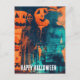 AI erzeugte Kunst eines Spuk Halloween-Haus doppelte Exposition verblasste Retro-Foto von ein paar Frauen und Kürbislaternen