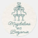 Retro Hand Drawn Aquamarin Champagner Tower Names Runder Aufkleber