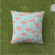 Retro Hand-Drawn Flamingo | Tropical Pattern Blue Kissen