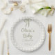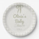 As you see this unique and elegant sage green gender neutral bow gingham baby shower paper plate has a well designed template. With green hand drawn ribbon and hand written name and date in green green script . And green border frame and gingham cottage core. All on cream background. Which you can customize easily by clicking on the personalize button.