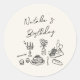 Wie Sie sehen, ist dieser elegante und einzigartige Geburtstagsbrunch-Aufkleber perfekt zum Geburtstag geeignet. Und wie Sie sehen, hat es ein einzigartiges Design, das einen cremefarbenen Hintergrund und schwarz handgezeichnete Brunch Geschirr aus Pfannkuchen, Blumenstrauß, Kerzen, Kuchen, Weinflasche und Glas, Trauben, Messer und Gabel. Mit skurrilen handgeschriebenen Namen. Sie können diese einfach anpassen, indem Sie auf die Schaltfläche Personalisieren klicken.