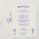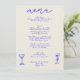 Ein einzigartiges Retro-Blau moderne Hand gezeichnet schriftlichen Hochzeitsdinner Menü. Das Design ist schick, Vintag cremefarbener Hintergrund und das Layout mit blauen handgeschriebenen Texten. Perfekt und passend zu der ganzen Suite. Und handgezeichnete Brillen.