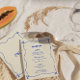 Die Einführung unseres handgeschriebenen Whimsical Blue Wedding Menüs, eine köstliche Ergänzung zu Ihrem Hochzeitsempfang. Diese Karte wurde entwickelt, um unser Thema "Handgeschriebene Whimsical Blue Wedding" zu ergänzen. Sie verleiht Ihren Tischeinstellungen eine Touch Vintagen Charmes und Lustigkeit. Das handgeschriebene Design auf der Speisekarte strahlt Wärme und Persönlichkeit aus und lädt Ihre Gäste ein, die kulinarischen Köstlichkeiten Ihres besonderen Tages zu genießen. Die blauen Farbtöne verleihen dem Ganzen ein Gefühl von Verspieltheit und Nostalgie und geben den Ton für ein fröhliches Fest. Unsere liebevoll und mit Liebe zum Detail gestalteten Menükarten sind stilvoll und funktionell, sodass Ihre Gäste das köstliche Angebot leicht nachvollziehen können. Ob Sie klassische Favoriten oder innovative Geschirr probieren, diese Karte wird Ihre Gäste begeistern und das kulinarische Erlebnis steigern. Entspannen Sie bei einem Hochzeitsempfang mit unserem handgeschriebenen Whimsical Blue Wedding Menu und Set die Bühne für eine Feier voller Liebe, Lachen und leckeres Essen.