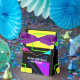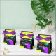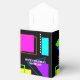 Vergnügen und leuchtend farbige Muster unterschiedlicher Formen, jeweils in einer fett-neonfarbenen Farbe. Dieses Retro-Design erinnert an den 80er mit den geometrischen Dreiecken, Quadraten, Rechtecken, Linien und Punkten in leuchtenden Gelb, Blau, Grün, lila und Aqua. Dieses Design hat auch einen eigenen Text im Vintagen Stil der 80er Jahre.