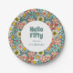 Retro Hippie Groovy Blume Hallo Fünfzig Geburtstag Pappteller