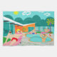 Dieses Retro homosexuelle Pool-Party-Küchen-TuchAusrüstungsbeschreibungen vier hunky Beefcakes, die eine homosexuelle alte Zeit haben, wie sie die Palm- Springhitze schlugen, indem sie herum das blaue Wasser des Türkises ihres Atombumerang geformten Swimmingpools lounging. Die moderne Architektur der Mitte des Jahrhunderts auf dem fabelhaften, orange Steinhaus ist offenbar das wirkliche HauptAnwesen, die Ansicht der Berge im Hintergrund gegeben. Eine gelbe Sternexplosionsonne scheint hell im Türkishimmel, also sind Sie in der Lage, jedes reizend Detail zu sehen--von den kitschy, rosa Flamingos zu den fünfziger Jahren striped, windiger Blockzaun. Und selbstverständlich würde welches Palm Springs-Haus ohne eine Palme komplett sein?