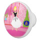 Dieser Retro In the Pink Knob sieht aus wie eine Szene aus einer romantischen Comedy aus den 1960er Jahren. Das minimalistische Design zeigt eine raffinierte Frau in ihrem ultra kitschigen und ultra rosa Penthouse Apartment. Der Saal ist mit einer rosa Ziegelwand mit weißen Kacheln versehen. Vor der Wand befindet sich ein grüner Kamin mit Kamin und einem rauschenden Feuer. Durch Glasschiebetüren sehen wir einen rosa Balkon mit weißem Geländer. Eine üppige, tropische Pflanze befindet sich in einem Aqua-Blumentopf. Vom Balkon aus hat man einen Blick auf die Silhouette einer großen Skyline der Stadt. Natürlich ist die Silhouette in Rosatönen gehalten! Ein gelber, halbmondlicher Mond ist am Himmel. Stehend auf einem heißen rosa Teppich in der Wohnung ist die führende Dame dieses Designs. Im krassen Gegensatz zur rosigen Welt, die sie geschaffen hat, trägt die schöne Blondine ein schwarzes, schwarzes, spitzenhaltiges Oberteil mit einem langen, flachen, weißen Rock mit schwarzen Federdekorationen. Mit diesem Design können auch Sie durch die Rose-Brille die Welt betrachten!