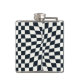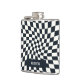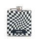 Moderne, aber Retro-psychedelisch karierte dunkelindigofarbene Flasche mit weißem und blau