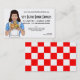 Dieses kennzeichnet retro inspirierte Entwürfe eine Fünfzigerjahre Frau, die ein Pulverblaukleid mit einer weißen Schürze trägt. Sie hält eine Umhüllungsplatte gefüllt mit Getränken, Popcorn und Hamburgern. Dieser vielseitige Entwurf hat viel des Textes und kann für jedes mögliches Restaurantgewerbe besonders angefertigt werden. Die umgedrehteseite dieser Vintagen Karte kennzeichnet ein kundengerechtes rotes und weißes Schachbretmuster.