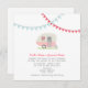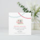 Un faire-part de mariage comportant une illustration d'une remorque vintage rose s'est garé dans l'herbe. La remorque a une boîte de fenêtre remplie de fleurs colorées. Donner un petit coup bleu et rouge en haut. Personnalisez le texte avec des détails de votre occasion. Articles assortis Look for chez Paperie de Jill.