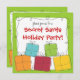 Un dessin espiègle des cadeaux enveloppés dans un rétro style fait une invitation de fête de vacances d'amusement. Perfectionnez pour un sac jetable ou une partie secrète de père Noël !