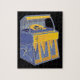 Blau und orange Retro Jukebox Abbildung. Transparentes Design für helle und dunkle Gegenstände. Benutzen Sie es so, wie es ist, oder passen Sie es mit Ihrem Text an.