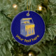 Blau und orange Retro Jukebox Abbildung auf blauem Hintergrund. Eigener Text.