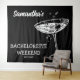personalisierte Retro-Junggeselinnen-Abschied-Tapisserie in Schwarz und Weiß mit Cocktailglas ist perfekt für einen Junggeselinnen-Abschied Foto Hintergrund. Feiern Sie Ihr Brautparty stilvoll mit einem Cocktail-Party-Thema in fett Schwarz und Weiß, das perfekte Thema für die nostalgische Vintage 70er Braut und ihre Brautjungfrauen.