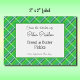 Ein benutzerdefiniertes Retrokonserven- oder Lebensmitteletikett mit handgeschriebenen Stift- und Slab-Buchstaben auf einem grünen karierten Muster mit kleinen, weißen und blauen Streifen für Pickles, Konfitüren oder andere Rezepte von Ihrem oder Ihrem kleinen Unternehmen.