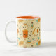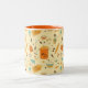 Die Küchenutensilien sind orange, gelb, türkis und braun.