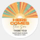 Retro kommt hier die Son Baby Dusche Runder Aufkleber