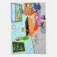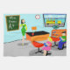 Dieses kundengerechte Retro Lehrer-Geschirrtuch erhält ein A+! Diese Sechzigerjahre Art, unbedeutende Kunst, der Cartoon, der Eigenschaften ein vibrierendes, grundlegendes Klassenzimmer mit alles zeichnet, musste den Verstand der Zukunft formen. Es ist die Art des Raumes, in dem Ideen bewertet werden und Kreativität gepriesen wird. An der Front des modernen Klassenzimmers der Mitte des Jahrhunderts, sehen wir den populärsten Lehrer der Schule, der vor einer Tafel stehend ist. Lehrer trägt ein hellgrünes und gelbes Kleid, mit gelben Schuhen. Obwohl die Uhr auf der blauen Wand uns sagt, ist es fast Zeit, damit die abschließende Glocke schellt, sie schaut noch so frisch wie ein Gänseblümchen. Ihr schwarzes Haar wird an der richtigen Stelle mit einem gelben Stirnband behalten und ihr Mod, rote Gläser helfen ihr zu sehen, um jeden möglichen Unfug auf der hinteren Reihe zu beschränken. Sie steht eine Hand auf ihrem orange und schwarzen Schreibtisch still. Der saubere Schreibtisch ist ein Tribut zu ihren feinen organisatorischen Fähigkeiten. Die einzige Sache auf dem Desktop ist ein glänzender, roter Apfel, der ohne Zweifel ihr von einem verehren Studenten gegeben wurde. Sprechen der Studenten… Wir können ein paar die sehen, auch. Von unserem Standpunkt können wir zwei eifrige Studenten sehen, hinter ihrem Rot, Schulschreibtische zu sitzen. Es gibt ein blondes Mädchen mit einem federnd Pferdeschwanz, der ein helles rosa Kleid trägt. Nahe bei ihr gibt es einen dunklen behaarten jungen Mann, der ein grünes Shirt und blauen Jeans trägt. Jedes Kind hält ein helles blaues Schulbuch. Sie sind so eifrig, zu erfahren, dass sie nicht einmal bemerkt haben, dass es fast Zeit ist, damit sie den gelben Schulbus verschalen, den wir warteten sie durch die offenen Vorhänge auf dem Klassenzimmerfenster sehen. Unter dem Fenster gibt es ein orange Bücherregal, das bunte Bücher und eine Kugel der Welt hält. Sorgen Sie sich nicht, Kinder. Morgen sind Sie zurück in Ihren Plätzen mit den hellen, glänzenden Gesichtern. Der Name auf der Tafel ist kundengerecht.