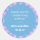 Diese personalisierten Aufkleber zeichnen sich durch ein spielerisches blau-lavender-kariertes Muster aus, das Ihren Feierlichkeiten eine moderne und skurrile Touch verleiht. Sie sind ideal zum Abdichten von Umschlägen, Dekorieren von Geschenktüten oder um die Dekoration des Party mit einem lustigen Detail zu versehen. Sie sind eine vielseitige Wahl für Hochzeiten, Duschen, Geburtstage und vieles mehr. Der knusprige weiße Text in der Mitte unterstreicht wunderbar Ihre herzliche Danksagung, die Namen und das Datum Ihrer Veranstaltung. Diese Aufkleber machen einen einfachen und stilvollen Weg, Ihr Thema gemeinsam Krawatten und Ihren Gästen einen bleibenden Eindruck verlassen.