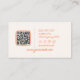 Wenn Sie eine perfekte und einzigartige Visitenkarte suchen, ist diese für Sie!! Ein einzigartiges und Retro-böhmisches, lila trendiges, helles, feines Visitenkarten-Template. Mit einem schlichten lila violetten Hintergrund, einem eleganten, einzigartigen Orangenskript-Schriftart und einem hellblauen Schachbrettmuster. Mit Vintag handgeschriebenem Titel oder Berufsvorlage. Und hinten haben wir die handgezeichneten Social-Media-Icons mit anderen Infos als Website und Kontaktinformationen und personalisierbaren QR-Code. Sie können es einfach und einfach anpassen, indem Sie in der blauen Schaltfläche Personalisieren klicken und dann die Informationen ändern. Wofür du gewartet hast!! Greifen Sie und wir garantieren Ihnen die phantastische Qualität und den schnellen Versand.